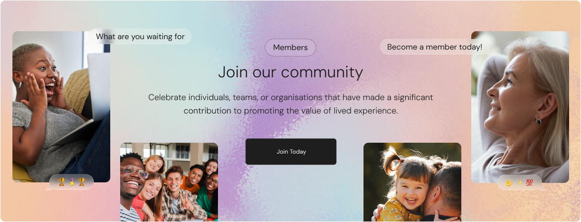 Cele brate individuals, teams, or organisations that have made a to significant contribution promoting the value of lived experience.